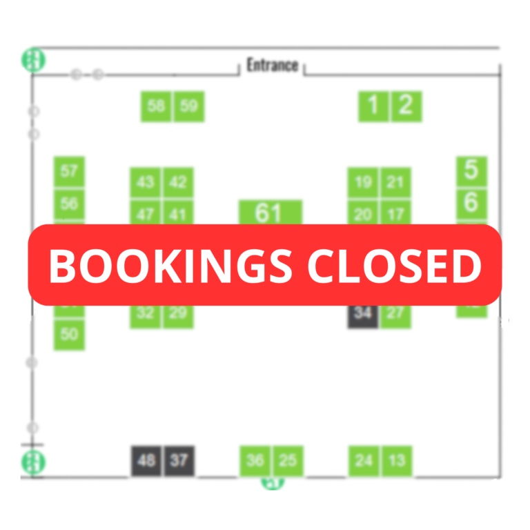 - Your booth will be placed on HOLD (Black) and confirmed on payment which can be done through the exhibitors portal or via direct debit.